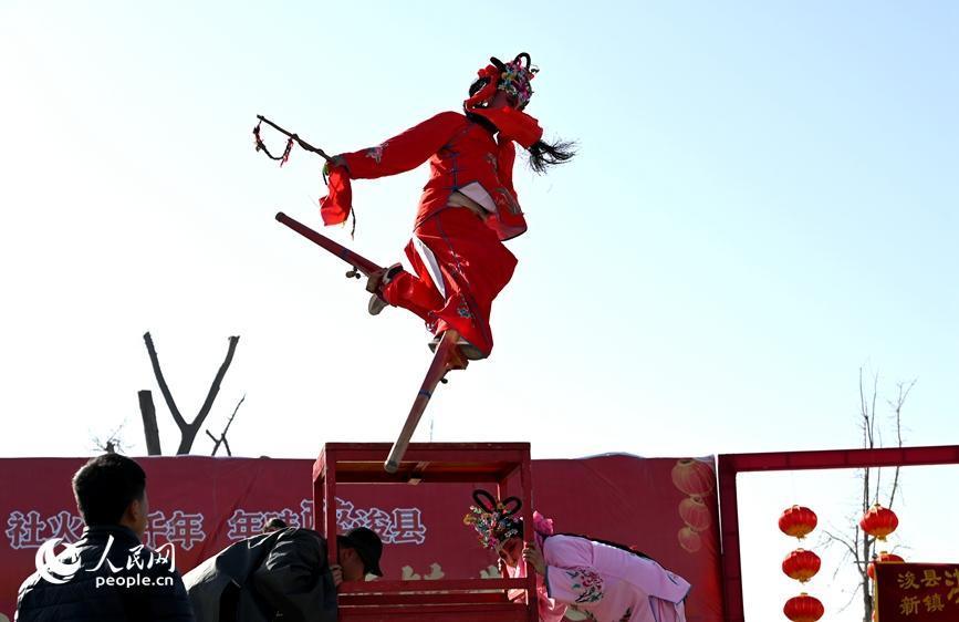 高跷表演。人民网记者 王玉兴摄