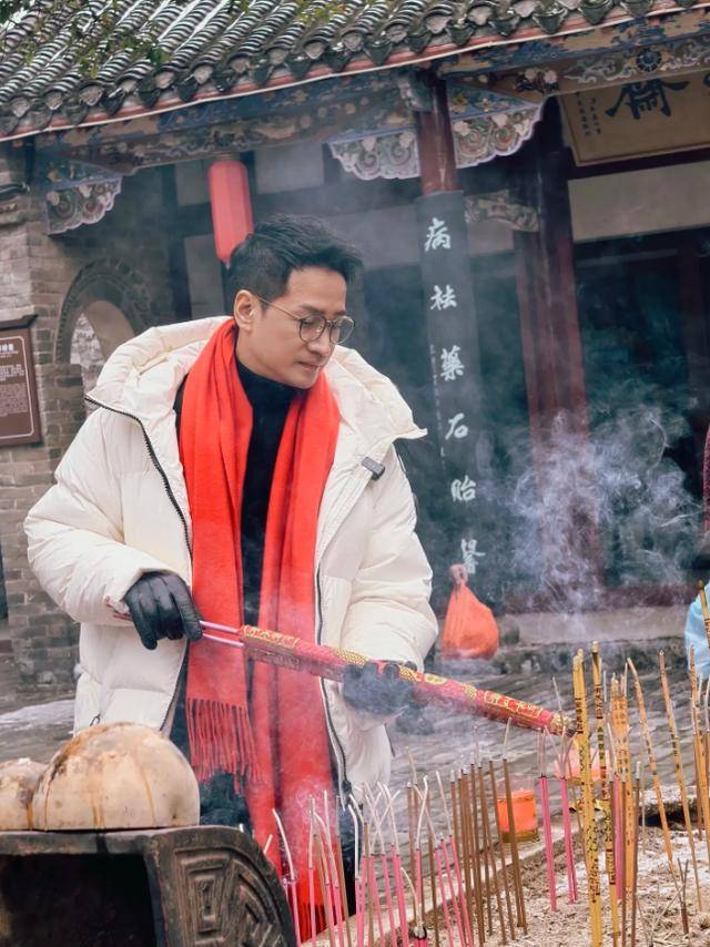 褪去荧幕光环的他,没有了精致妆容加持,状态和从前判若两人,唯独上香时的虔诚藏不住心绪。
